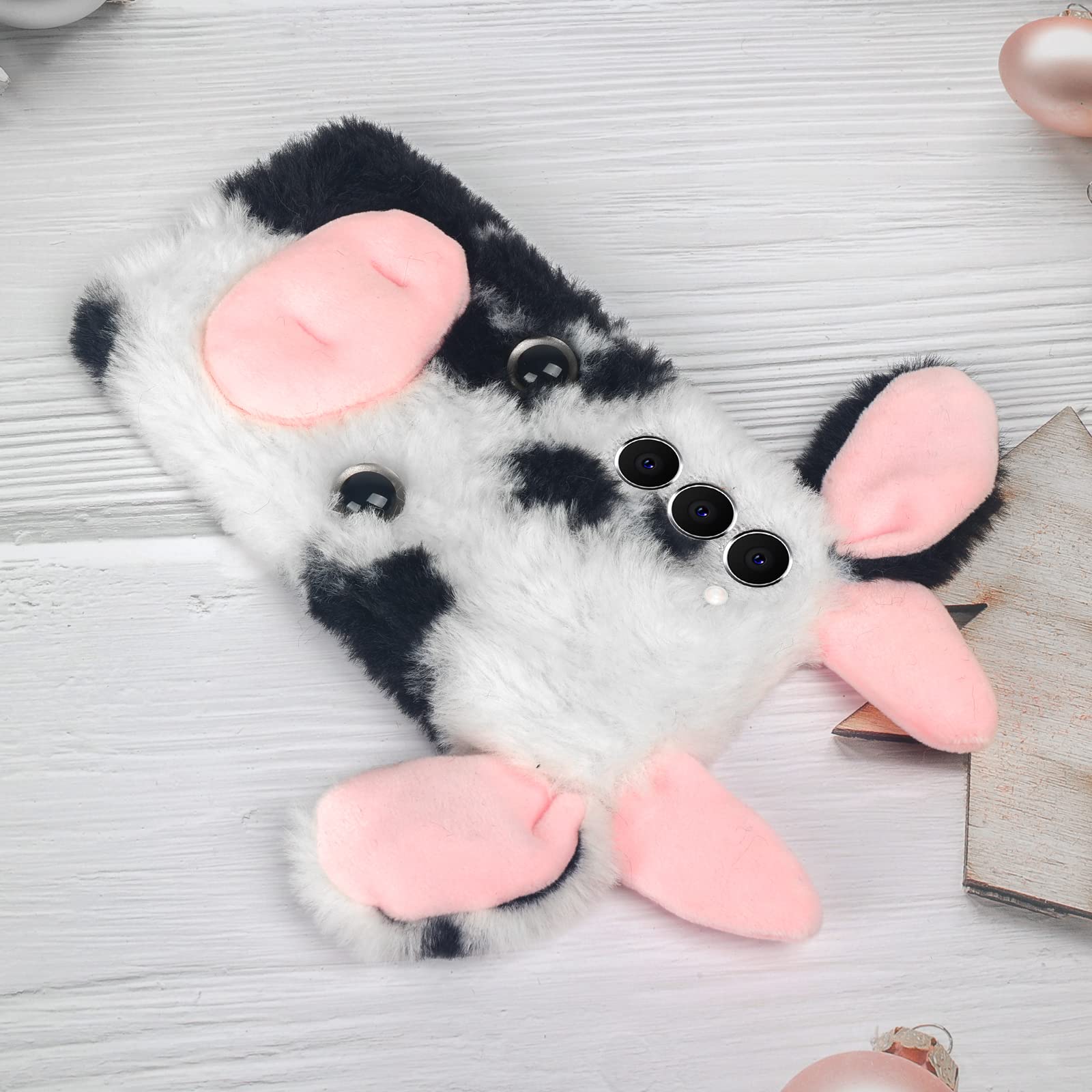 - 【 Compatibility 】 Elegant cute 3D fuzzy cow case compatible with Galaxy S25.