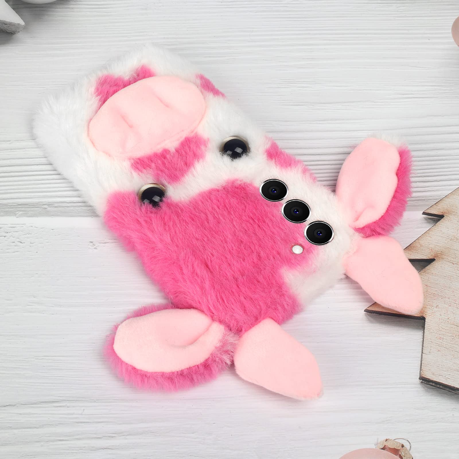 - 【 Compatibility 】 Elegant cute 3D fuzzy cow case compatible with Galaxy S23 Ultra.