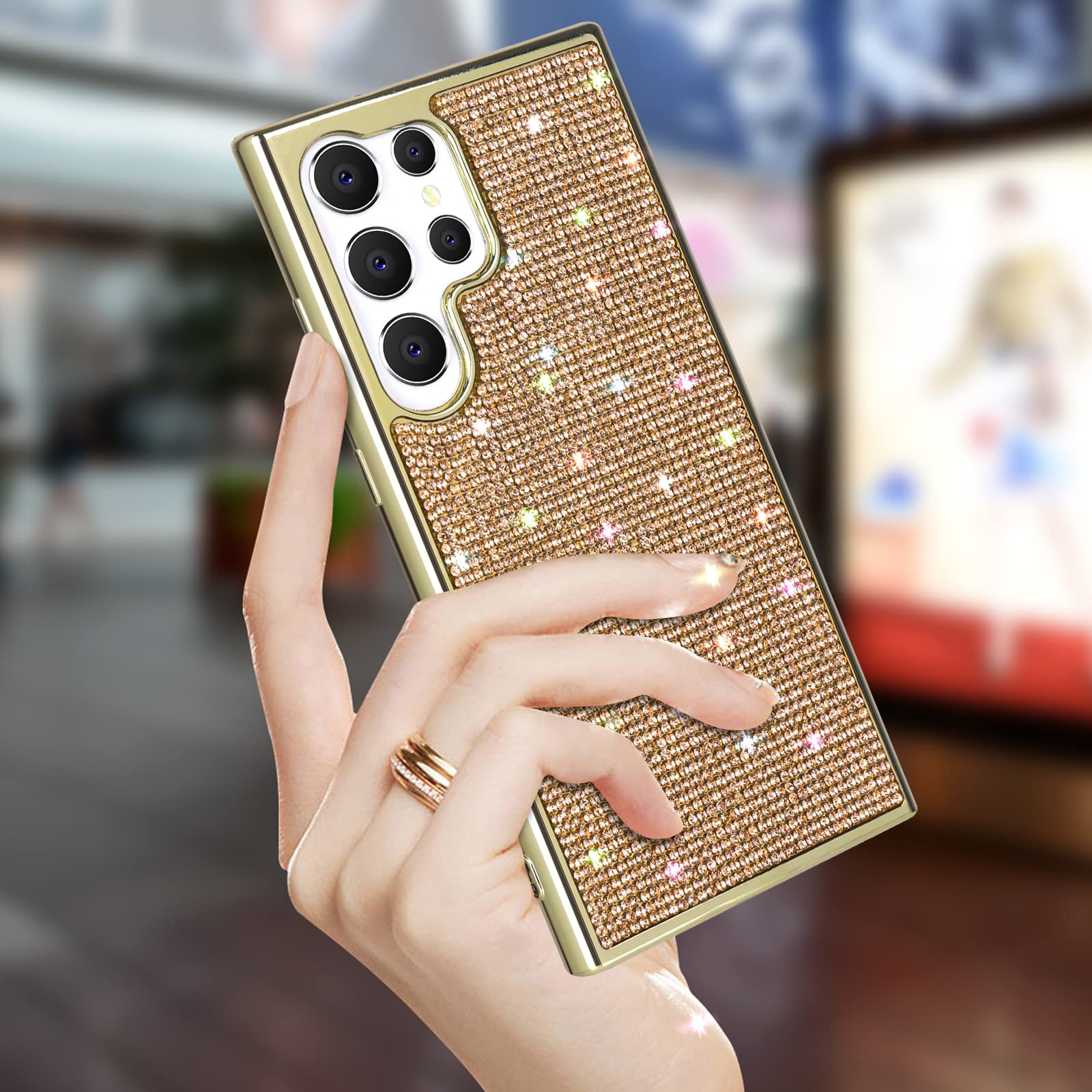 LUVI Compatible with Galaxy S23 Ultra Diamond Case Cute Bling Glitter Rhinestone Crystal Shiny Sparkle Protective with Electroplate Plating Bumper Luxury Fashion Protection Cover