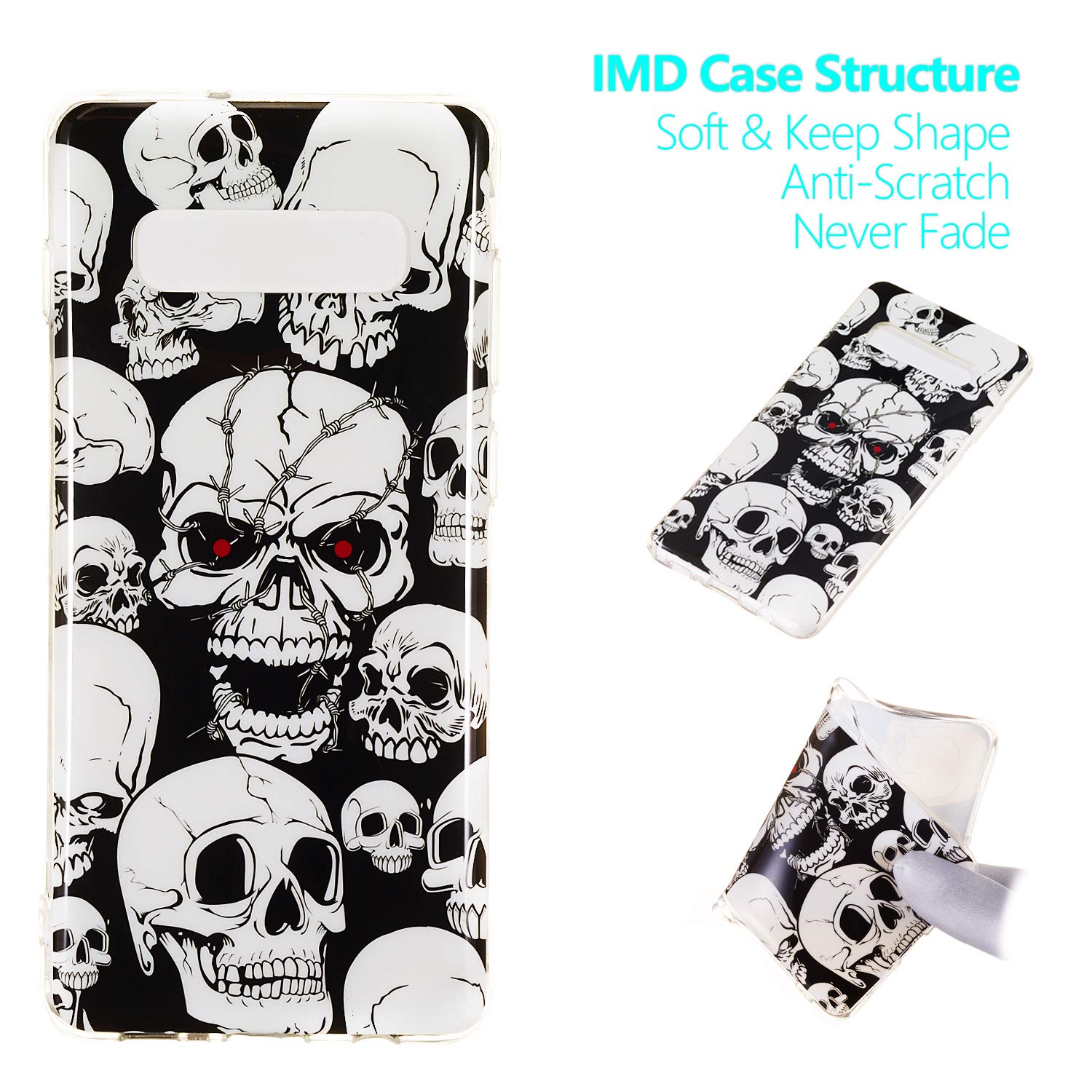 LUVI for Galaxy S10 Plus Glow Case Noctilucence Glow in The Dark Case for Galaxy S10 Plus Clear Case Ultra Thin TPU Shockproof Print Glow Case for Galaxy S10 Plus Skull